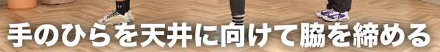手のひらを天井に向けて脇を締める → Palms to ceiling, squeeze sides