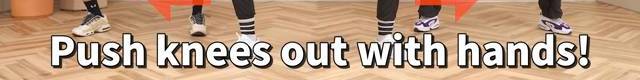 手でヒザを外側に押すイメージ → Push knees out with hands!