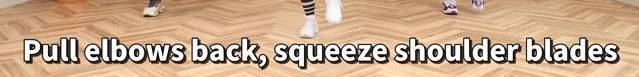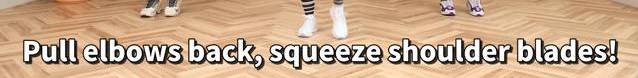 ヒジを引いて肩甲骨を寄せて → Pull elbows back, squeeze shoulder blades