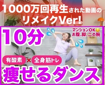 | 0:01.3–0:04.2 | r002 | 1000万回再生動画のリメイク! 10分 マンションOK 腹筋・脚・二の腕 有酸素 x 全身筋トレ 脂肪燃焼ダンス | |||||
