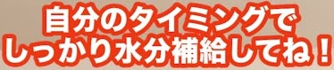 | 2:40.4–2:45.3 | r075 | red_beige | 自分のタイミングで しっかり水分補給してね! | 记得补水! | 水分補給を忘れずに! | Stay hydrated! | |