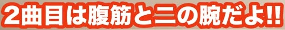 | 3:41.6–3:44.5 | r092 | red_beige | 2曲目は腹筋と二の腕だよ!! | 第二首练腹肌和上臂后侧!! | 2曲目はお腹と二の腕! | Second song: abs & triceps!! | |